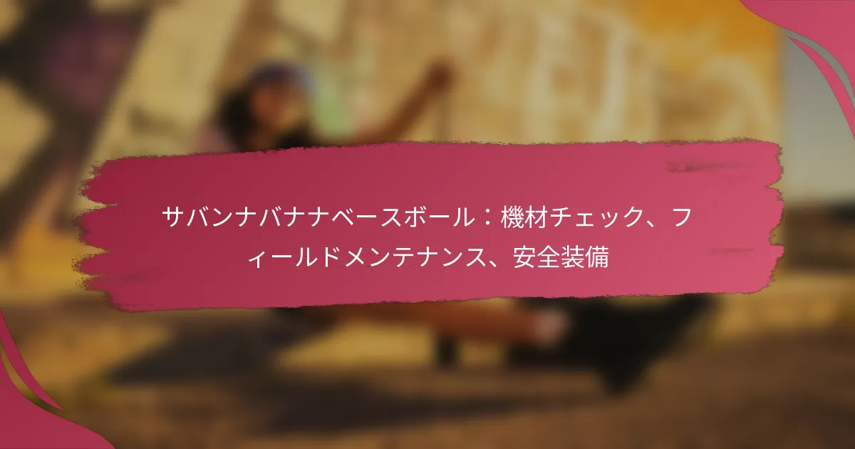 サバンナバナナ野球において、選手の安全とパフォーマンスを確保するために、必須の機材チェックが重要です。バット、グローブ、保護具に焦点を当てています。定期的なフィールドメンテナンス、芝生の手入れや安全点検を含むことは、最適なプレイ条件を維持するために不可欠です。さらに、選手は試合や練習中の怪我のリスクを最小限に抑えるために、ヘルメットやチェストプロテクターなどの適切な安全具を着用する必要があります。