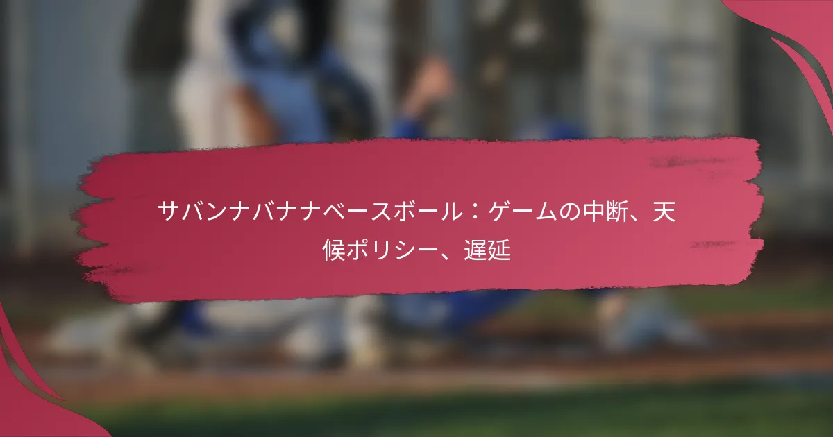 サバンナ・バナナの試合中の遅延は、主に天候条件やゲームの中断によって発生する可能性があります。これらの遅延はファンの全体的な体験に影響を与える可能性があり、明確なコミュニケーションと効果的な管理戦略が必要です。
