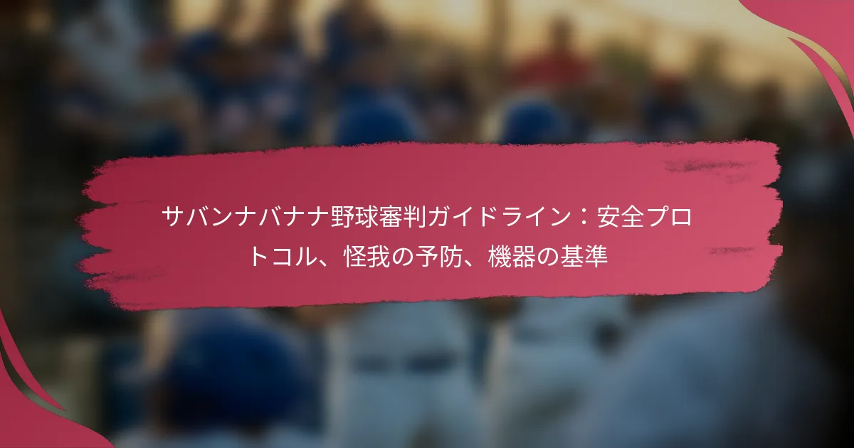 サバンナ・バナナの審判における安全プロトコルは、ゲーム中のすべての参加者に安全な環境を確保するために設計された重要なガイドラインです。これらのプロトコルには、緊急手順、試合前のチェック、コミュニケーション方法、天候の監視、フィールドの危険を管理するための戦略が含まれます。